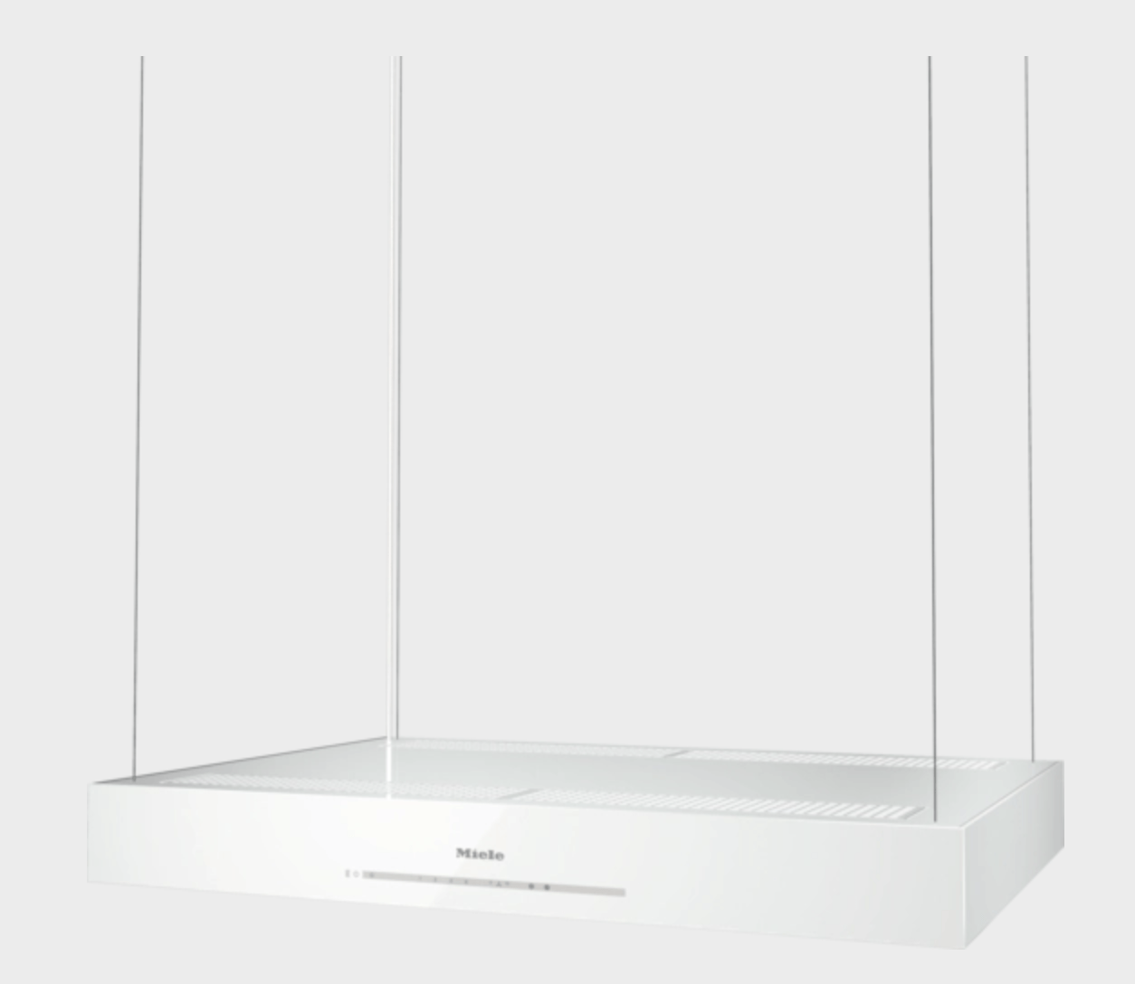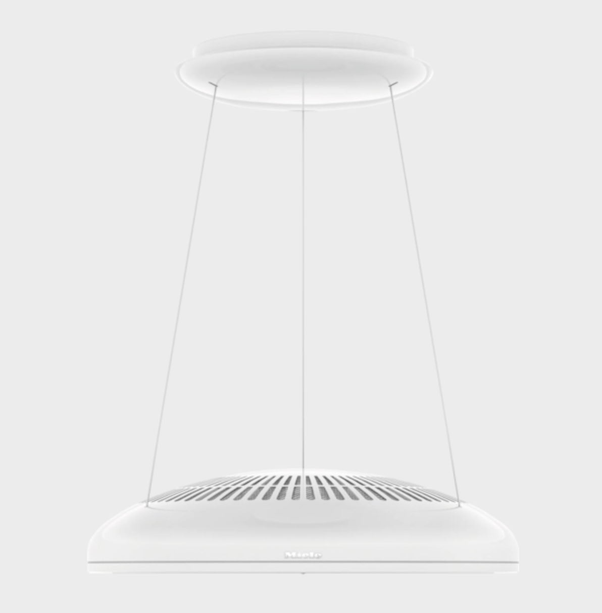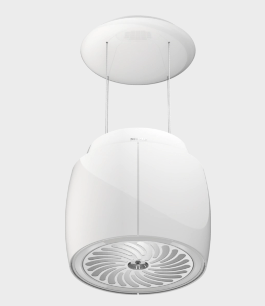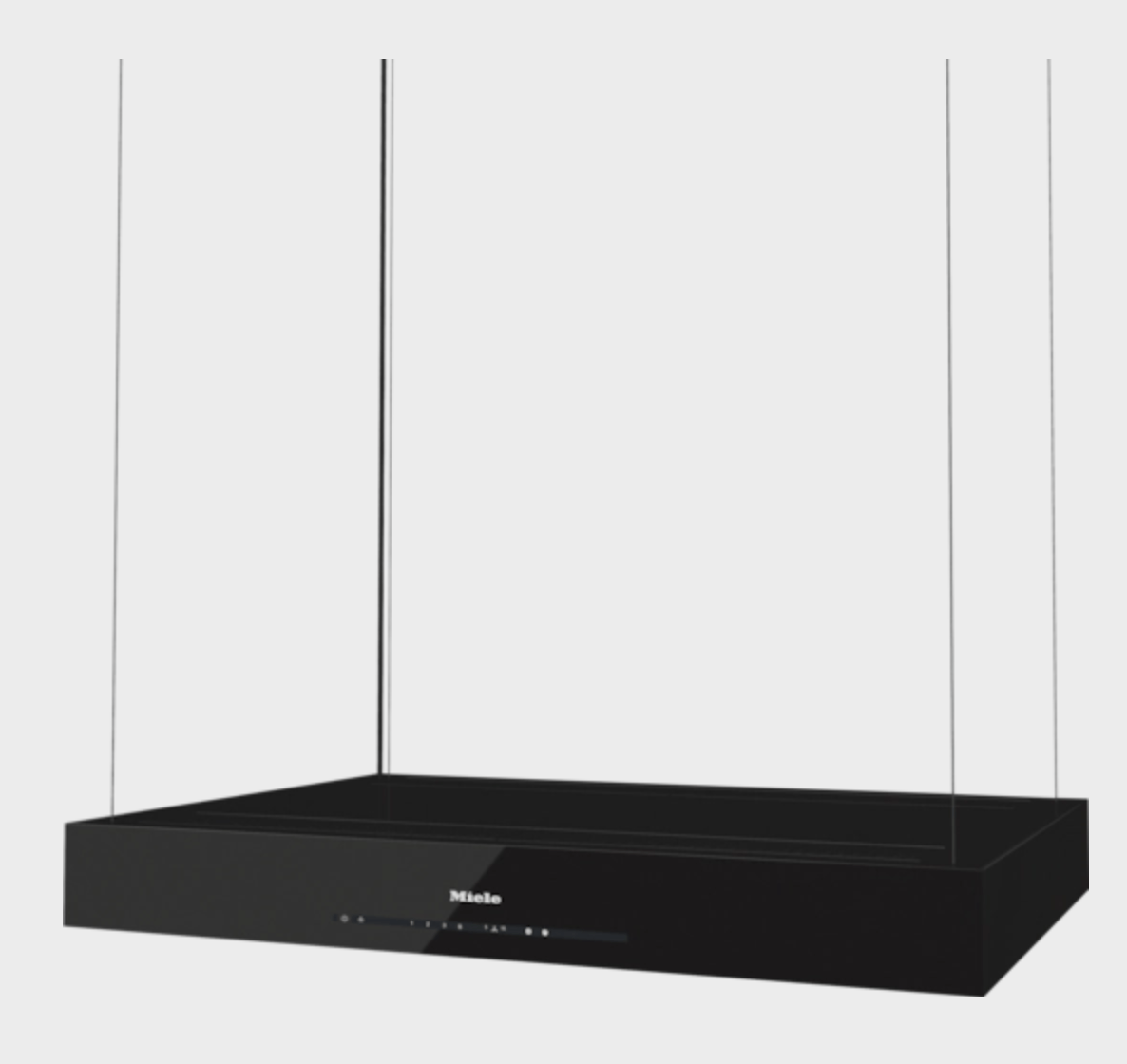 Hotte pour îlot avec une suspension spéciale sur des câbles discrets et alimentation intégrée.